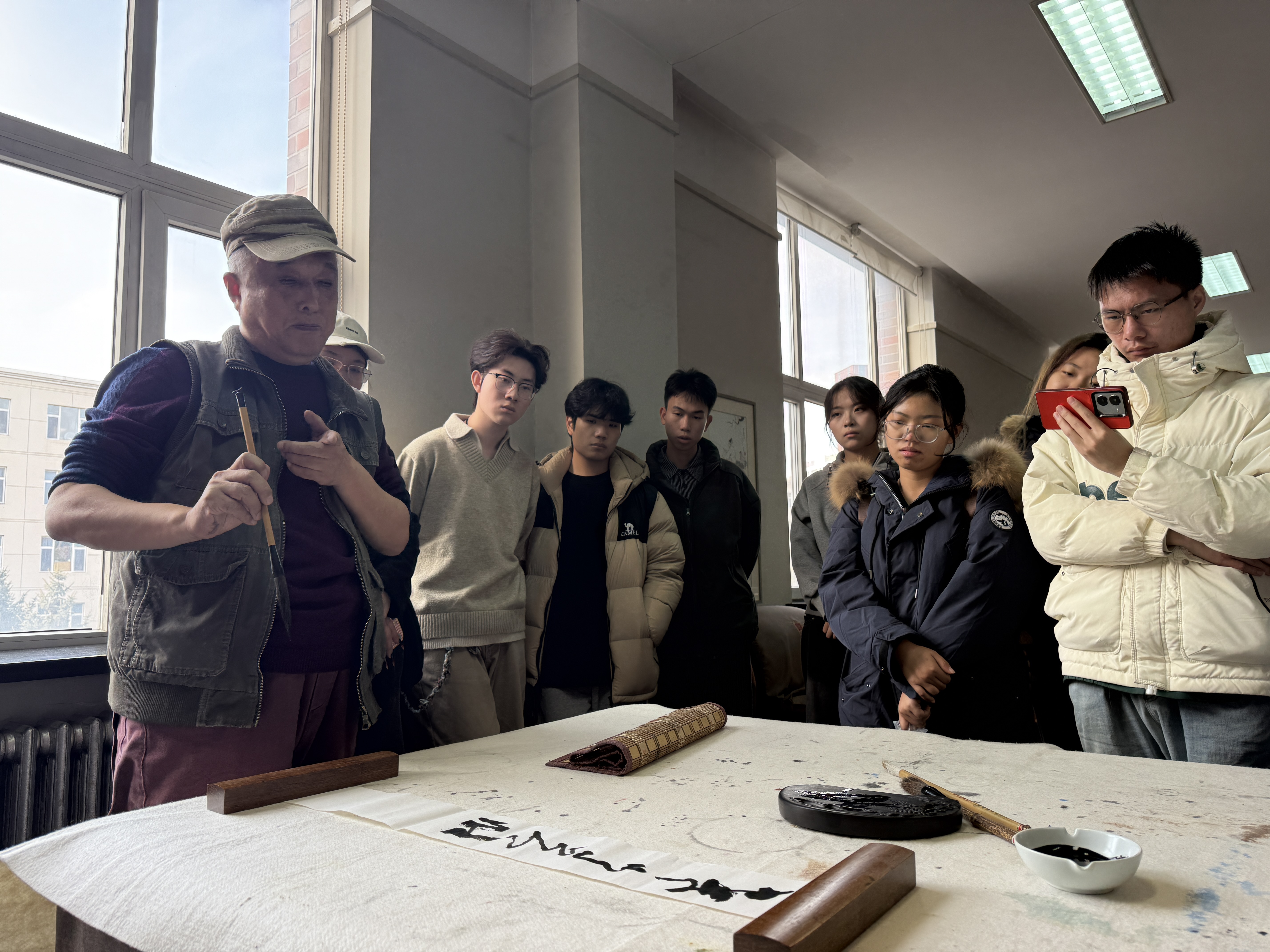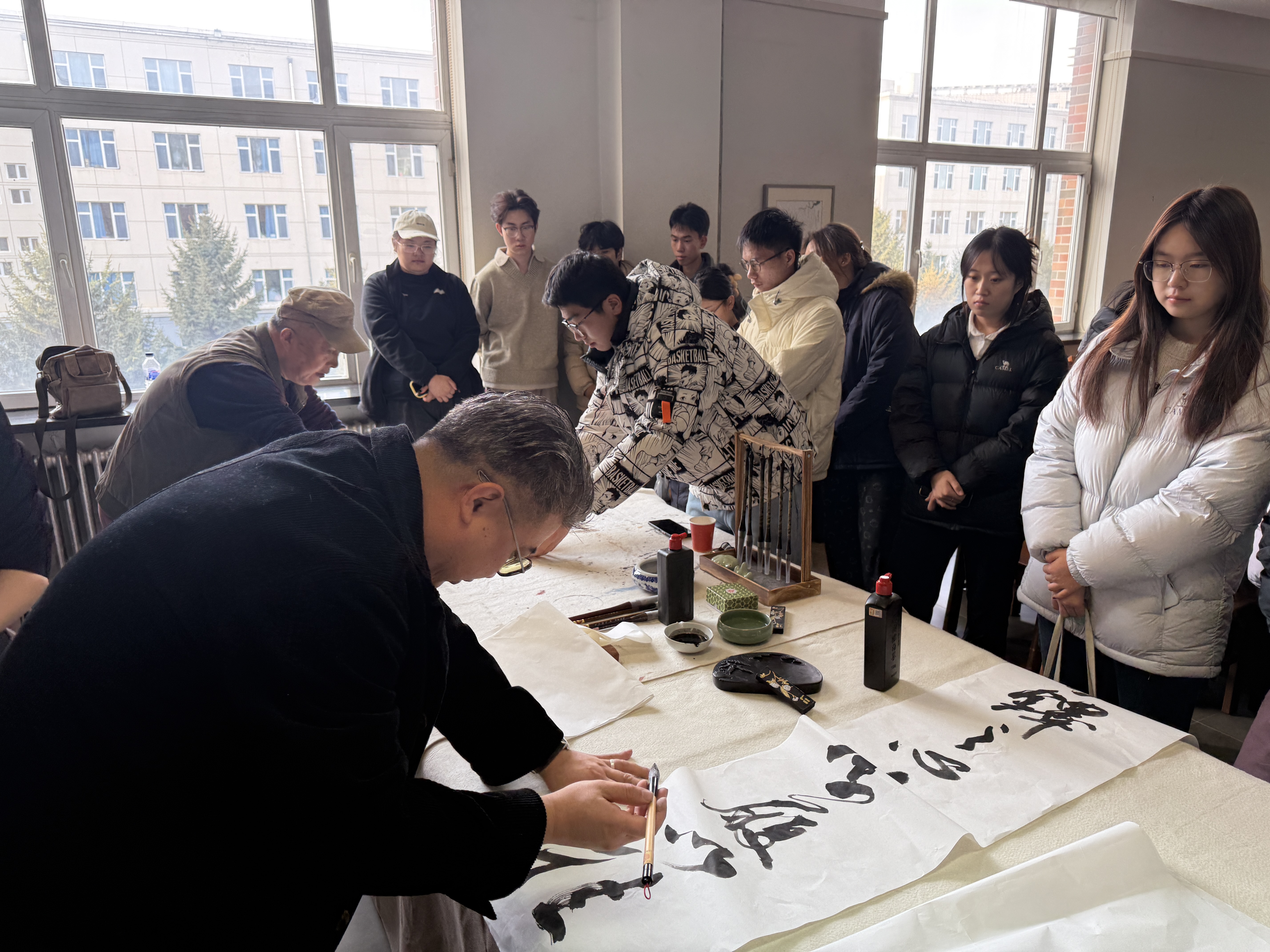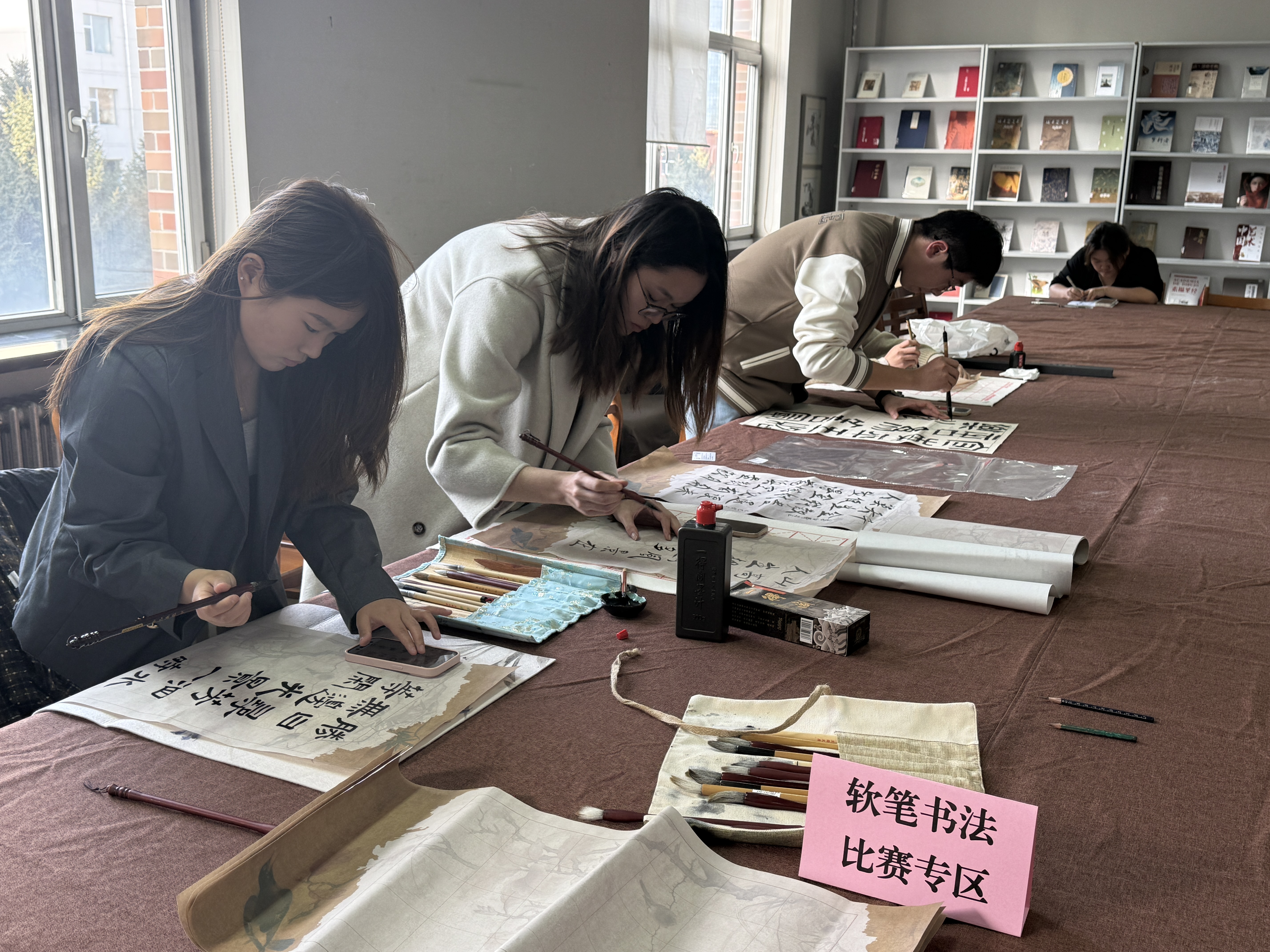本次起笔仪式是“师生书画创作坊”创建以来的一次集中展示,彰显了图书馆以文化人、以美育人的服务理念,为师生搭建了一个集创作、交流、展示于一体的文化空间。“师生书画创作坊”每周一至周五下午开放,以书画艺术创作为交流媒介,接待师生团体与个人利用,不定期展出师生创作的优秀作品,以达到传承中华优秀传统文化、强化艺术创作、促进交流学习的作用,欢迎吉动师生广为使用。