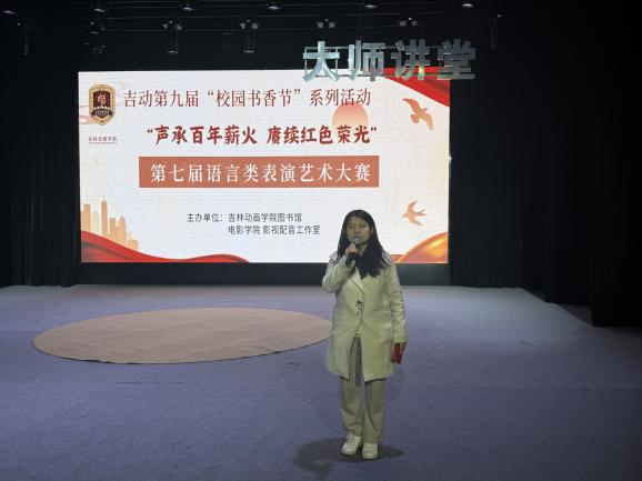 为奏响新时代的磅礴乐章,彰显吉动青年的卓越风姿与艺术才情,凝结砥砺前行的青春力量,图书馆联合电影学院、影视配音工作室举办“声承百年薪火 赓续红色荣光”第七届语言类表演艺术大赛,重现历史典故和红色故事,从党的百年奋斗中积蓄力量,奋发图强。