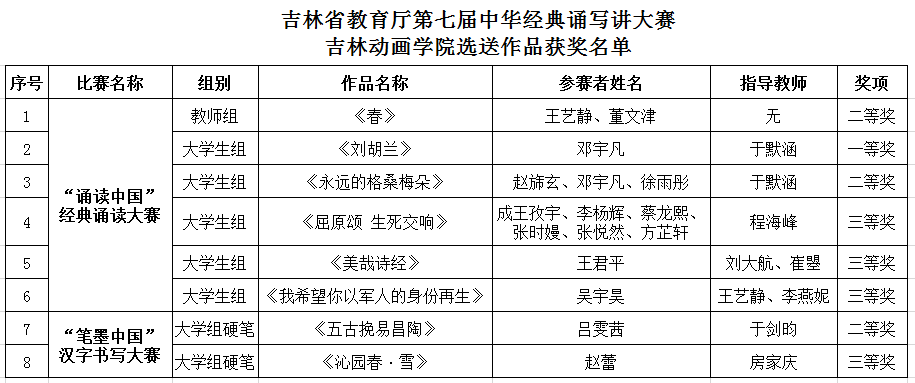 以声传情、以笔写心,本次成绩的取得,充分展现了我校师生扎实的语言功底、出色的艺术表现力和昂扬的精神风貌,彰显了我校学研产一体化人才培养方面的显著成效。校图书馆与语言文字工作委员会将以此为契机,持续深化比赛内涵,凝聚中华民族共同体意识的精神力量,营造爱读书、读好书、善读书的浓厚氛围,激发吉动学子、教师对中华经典的热爱,引导吉动学子努力成长为担当民族复兴大任的时代新人。