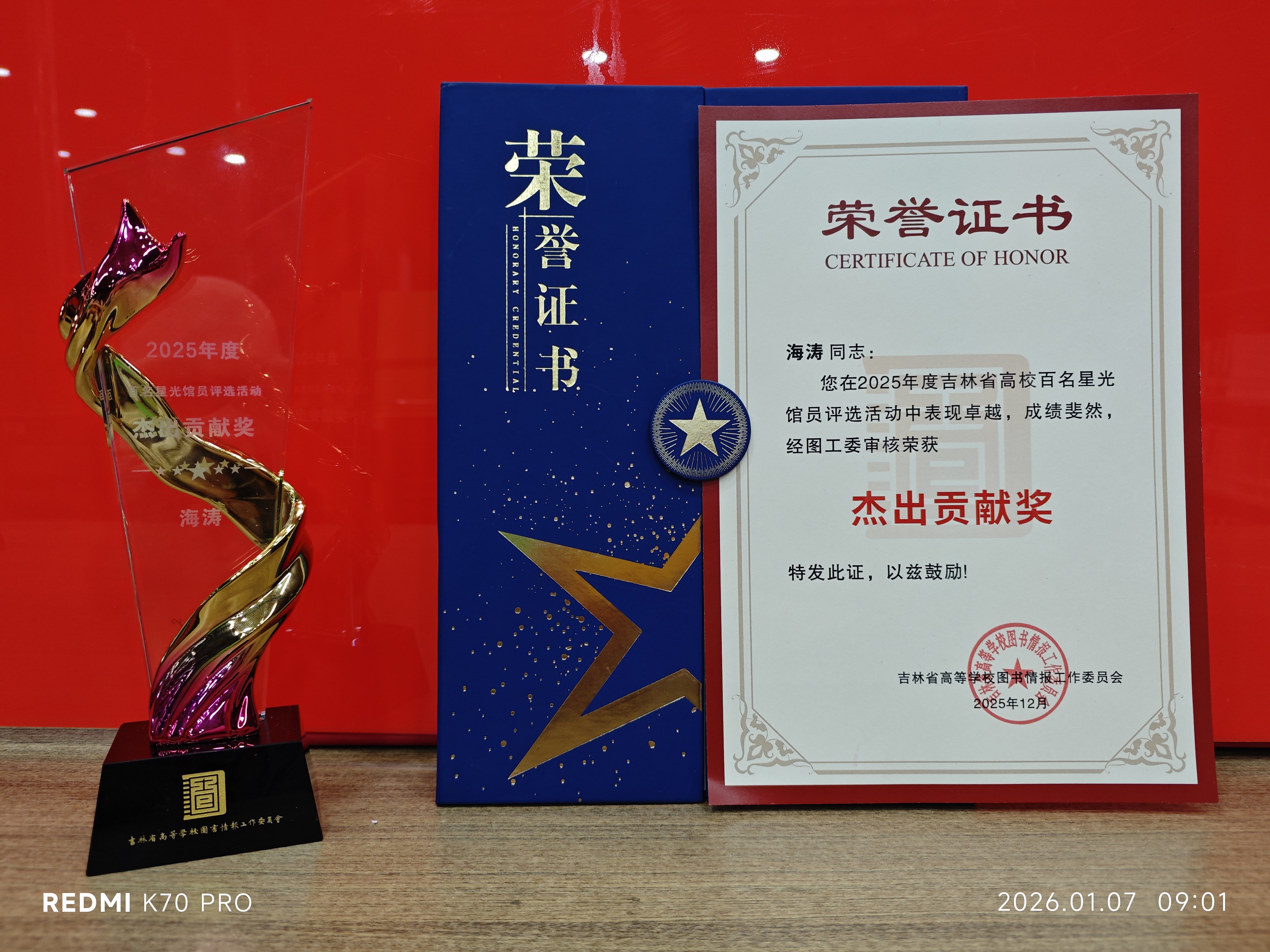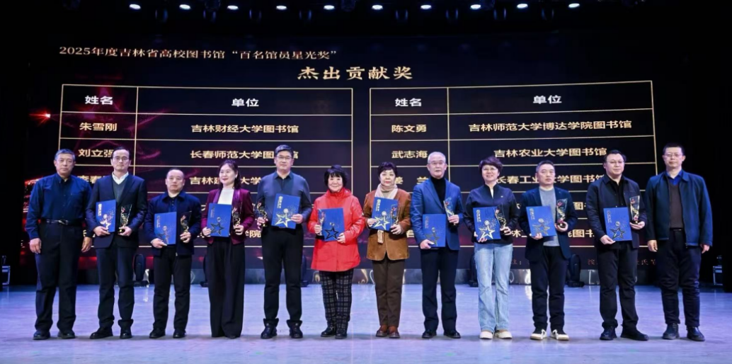 1月5日,由吉林省高校图工委主办的以“星光传使命 笃行向未来”为主题的吉林省高校图书馆学术年会与“百名馆员星光奖”颁奖仪式在长春举办。教育部高等学校图书情报工作指导委员会秘书长、省教育厅领导、特约报告专家、全省高校图书馆馆长、获奖馆员以及各馆业务骨干参会。